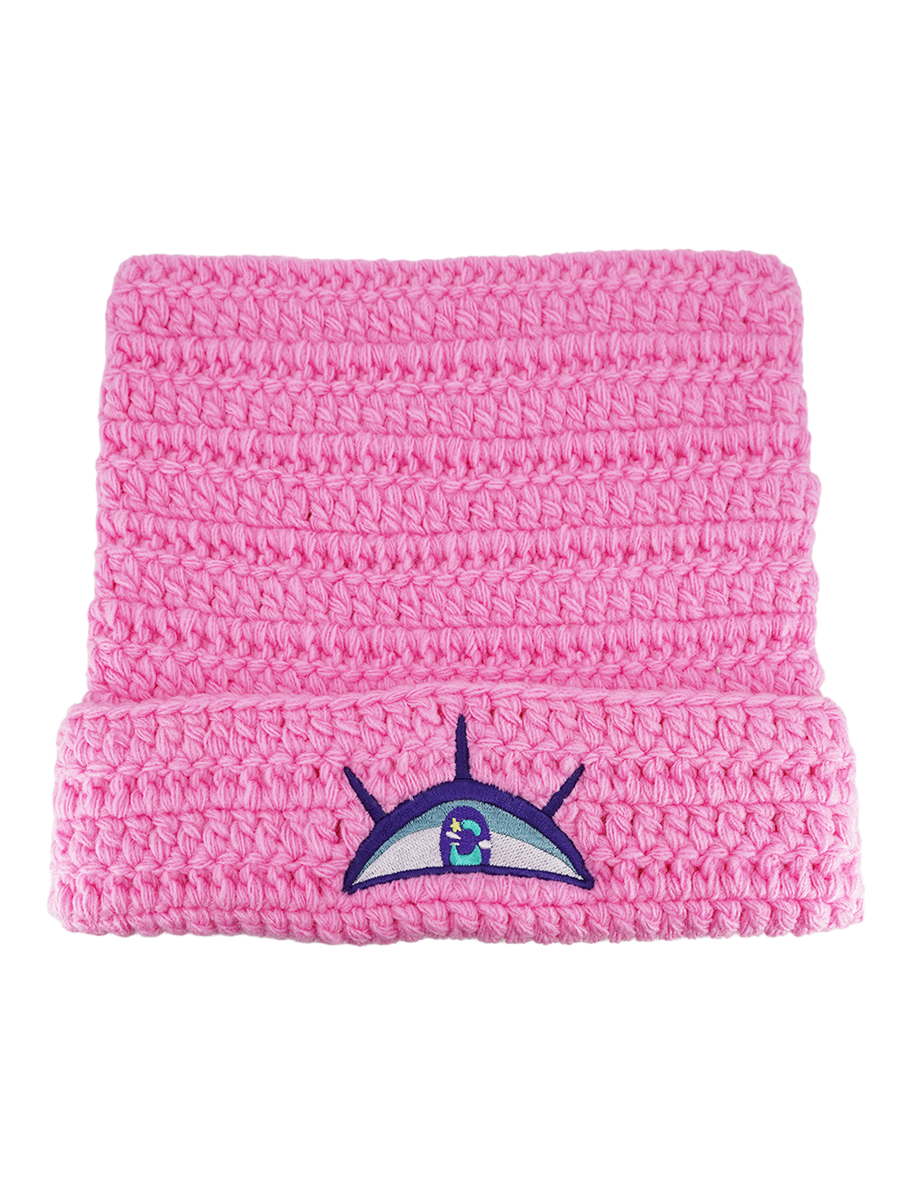 CROCHETED ACRYLIC BEANIE WITH EMBROIDERY ON FRONT