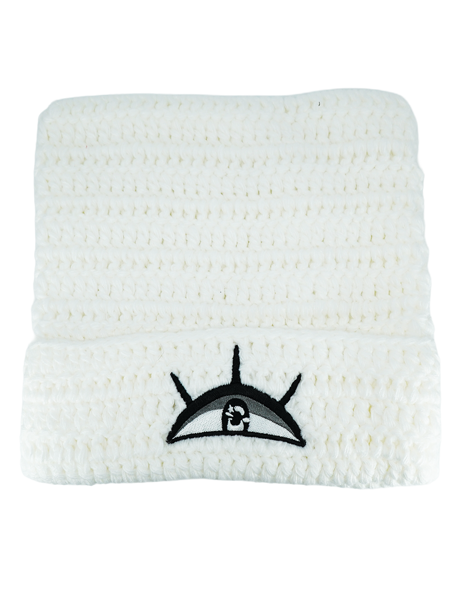 CROCHETED ACRYLIC BEANIE WITH EMBROIDERY ON THE FRONT